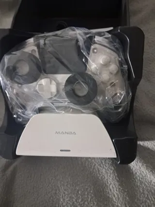 Mando de gaming de la marca MANBA, completamente nuevo y sin usar. - Diseño ergonómico. - Acabado plateado y negro.