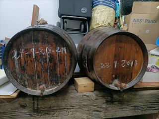 Barricas de roble del 2018 y 2017 para decoracion, se podrian usar para almacenar vino u otros liquidos pero habria que rehidratarlas y esterilizarlas (si se necesitan asi el precio seria superior, 40) estan en Roa de Duero. Dimensiones aproximadas 97x63