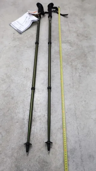 Par de bastones de trekking ajustables, perfectos para tus aventuras al aire libre. - Mangos ergonómicos para mayor comodidad. - Mecanismo de ajuste rápido y seguro. - Puntas de goma y rosetas incluidas.