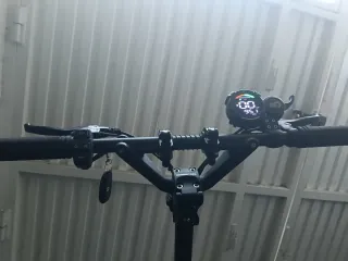 Patinete eléctrico con pantalla digital. - Manillar con controles. - Freno de mano. - Llave de encendido.
