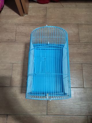 jaula blanca , con comedero y bebedero. en perfectas condiciomes