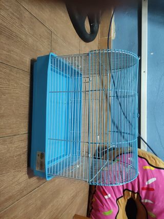 Jaula para roedores. Tiene bebedero y dos ruedas, una sin estrenar. También incluyo la casita de madera.
