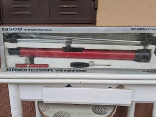 Telescopio Tasco de 40 aumentos, ideal para iniciarse en la observación. - Incluye trípode metálico. - Tubo principal de color rojo. - Incluye accesorio adicional. A recoger en Béjar (Salamanca ) NO hago envios