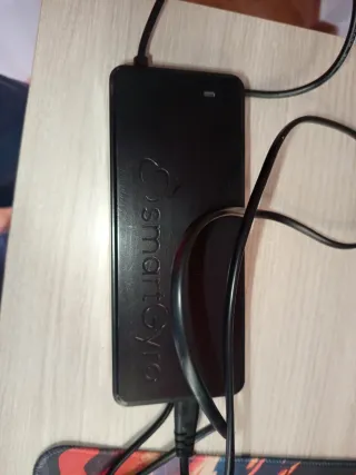 Cargador para dispositivos SmartGyro. En perfecto estado. - Color negro. - Logo de SmartGyro grabado.