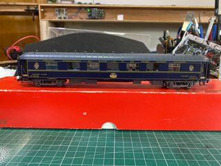 Este es un coche de ferrocarril en miniatura de Rivarossi, modelo 1ª Clase Pullman. - Réplica detallada de un vagón de lujo. - Diseño clásico con esquema de colores azul y crema. - Inscripciones Compagnie Internationale des Wagons-Lits y Grands Express Européens. - Número de modelo 4009.