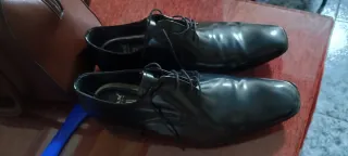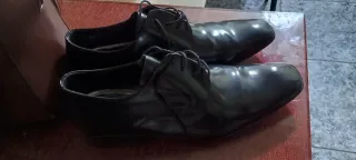 Elegantes zapatos de vestir negros, usados una sola vez. - Diseño clásico con cordones. - Acabado brillante.