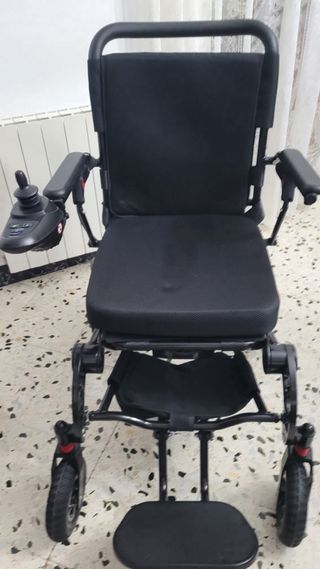 Silla de ruedas motorizada de la marca MedicalPro, diseñada para ofrecer comodidad y movilidad. - Asiento acolchado. - Reposabrazos. - Joystick de control. - Ruedas traseras grandes y delanteras pequeñas. Un solo uso, nueva cuesta 1200 €