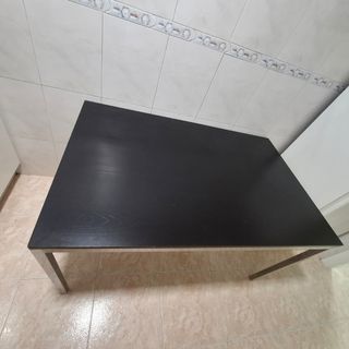 Mesa de comedor con superficie negra y patas inoxidable - Diseño moderno. - Patas inoxidable - Superficie de color negro. - 135 largo - 85 ancho - 75 alto