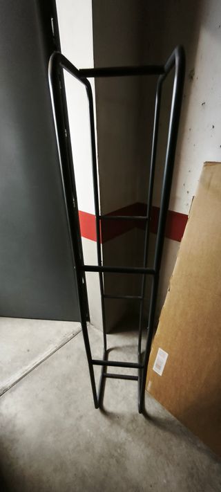 Leñero de metal con un diseño moderno y funcional. Ideal para almacenar leña. Debido al tamaño no se puede enviar - Estructura de metal negro. - Diseño abierto para fácil acceso.