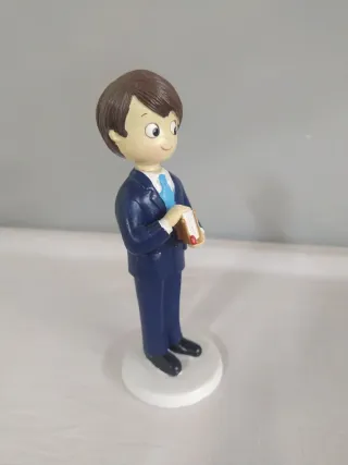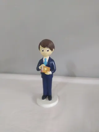 Figura de niño para comunión de la marca Mopec. Ideal para decorar tartas o como recuerdo. - Diseño de niño con traje azul y corbata. - Sostiene un libro en sus manos. - Base redonda blanca. Altura 015 Ancho 004
