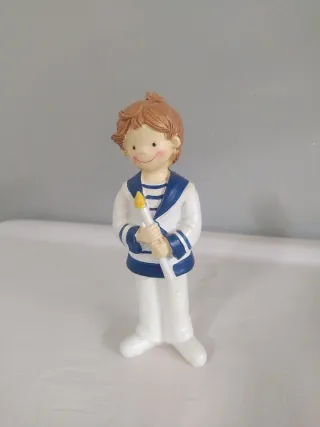 Figura de niño de comunión de la marca Mopec. Representa a un niño vestido con traje marinero y portando una vela. - Diseño detallado. - Ideal como recuerdo de comunión. Altura 015 Ancho 003