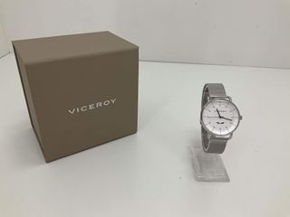 El precio mostrado es el de venta en nuestra tienda. El precio de este producto en nuestra página web puede ser diferente. Este artículo está disponible en nuestra tienda de Bilbao. reloj pulsera unisex viceroy 47690 CC007_E1006708_0 es un objeto que se ofrece en estado correcto. Todos nuestros productos cuentan con garantía de 3 años y un plazo de devolución de 14 días. Documentacion del reloj: No tiene | Material de la caja: Acero | Estuche: No | Genero-tipo: Unisex | Funciones: Minutos y segundos | Diametro: 10 | Cristal: Mineral | Correa: Acero | Tipo de movimiento: Cuarzo | Marca: Viceroy | Talla: 10 | Modelo: 47690. Pre