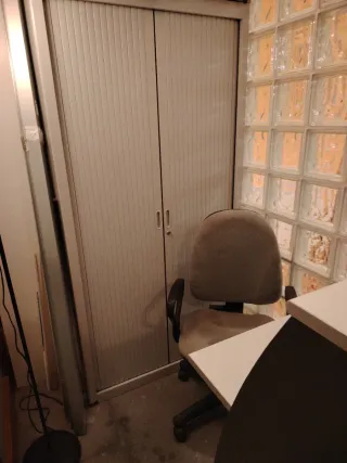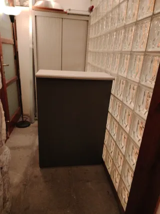 Mueble de recepción con un diseño moderno y elegante. - Color gris oscuro y claro. - Superficie superior clara. - Regalo la silla.