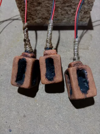 Pack de 4 antorchas de madera para la pared. Medida entre 4 y 4,5cm de largo. Ideal para belenes ó maquetas. Con un LED rojo efecto llama de 12V. Totalmente hechas a mano.