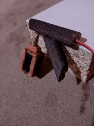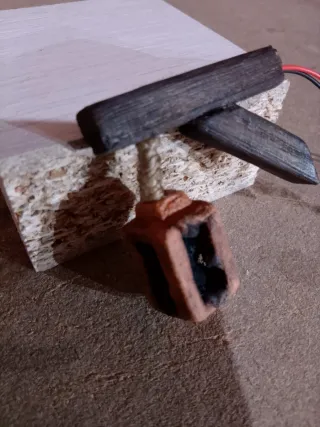 Pack de 4 leños de madera para hacer hogueras. Medida entre 3 y 3,5cm de largo. Ideal para belenes ó maquetas. Con un LED rojo efecto llama de 12V. Totalmente hechas a mano.