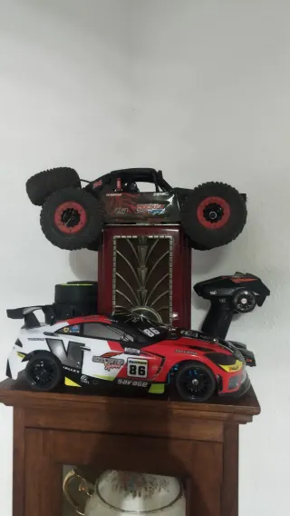 Coche radiocontrolado con su mando y carrocería. Motor brushless, variador 150. Va espectacular. Funciona con 6s aunque se le puede poner una 3s