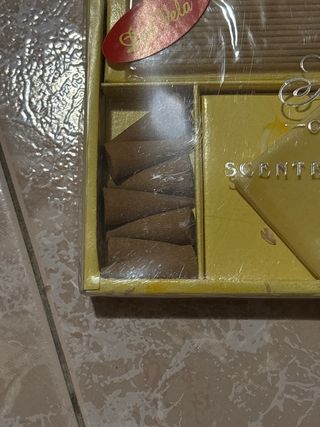 Set de ambientación para el hogar con inciensos y elementos decorativos. - Contiene varillas de incienso. - Incluye elementos decorativos secos. - Presentado en caja dorada.