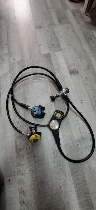 Equipo de buceo completo con regulador Mares y consola. - Regulador de primera etapa Mares. - Regulador de segunda etapa Mares. - Consola con manómetro y brújula.