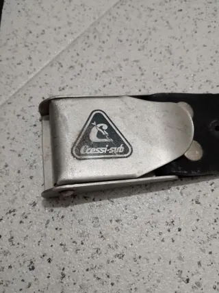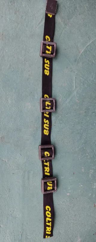 Cinturón de buceo de la marca Nemrod, medida 1,30m. Se pueden vender independientemente, solo el cinturon o los lastres. Ideal para equipamiento de buceo. Los interesados seria conveniente que antes dijeran cuantos lastres quieren con el objeto de que el transporte le saga mas barato de pendiendo del peso del paquete. El cinturan se vende por 5,090€ y los lastres tambien 5,00€ la unidad. - Cinturón con hebilla metálica. - Lastres de color azul y amarillo. - Correa con diseño de rayas negras y amarillas.