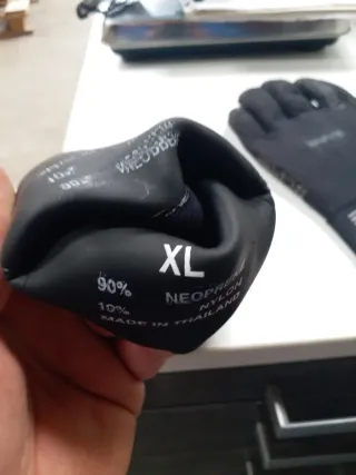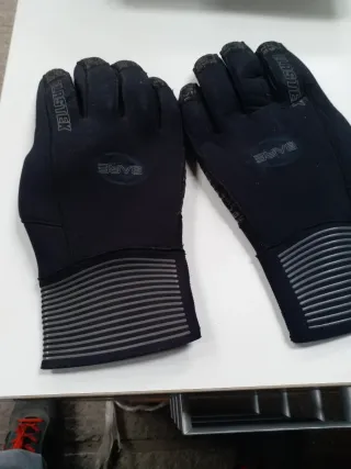 Guantes de buceo de color negro, diseñados para ofrecer protección y agarre. - Material de neopreno. - Diseño con textura antideslizante en la palma y dedos. - Puño elástico con cierre de velcro.