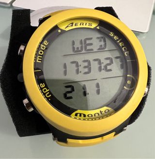 Vendo AERIS MANTA (amarillo): Air/Nitrox 50%, Gauge, Free Dive, Watch. Batería nueva sept 2025. Funda silicona incluida. 100m, alarmas, backlight, logbook PC Diseño reloj diario (hora/alarm/crono). Sin caja, 100% func. Espero sus ofertas! ))