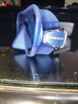 Gafas de buceo Cressi sin marco en color azul. Diseñadas para ofrecer una visión amplia y cómoda. - Diseño frameless. - Correa ajustable. - Lentes de cristal.