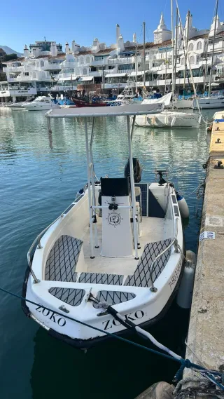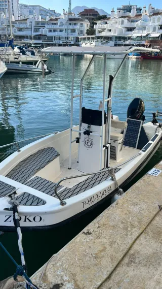 VENTA RAPIDA Barco de 4,71 metros de eslora con amarre incluido en Puerto Marina. Barco perfecto para la pesca y buceo. Motor Suzuki 50cv recién echo el mantenimiento. El motor está perfecto. Bajo consumo de gasolina. Equipado con ancla de fondeo, vengalas, chalecos etc. Placa solar para cargar la batería y batería nueva cambiada en el mes de enero 2026. Tengo también altavoces y radio sin estrenar para montarselo, Radio VHF, y sonda. También tengo pintura para barco y esmalte , para pintarlo en color gris nardo por si se le quiere cambiar de color. - Eslora: 4,71 metros. - Amarre en Puerto Marina.