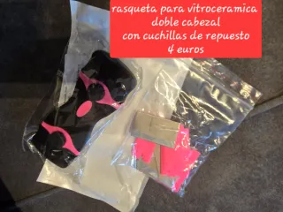 Rasqueta para vitrocerámica con doble cabezal y cuchillas de repuesto. - Incluye rasqueta. - Cuchillas de repuesto. Y lote de cepillos para limpieza a findo
