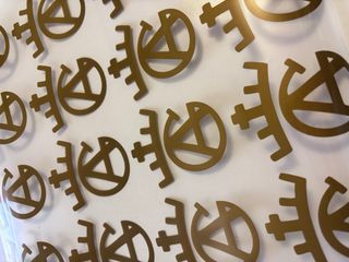 Pegatinas para ropa con logotipo en color dorado. Reservado