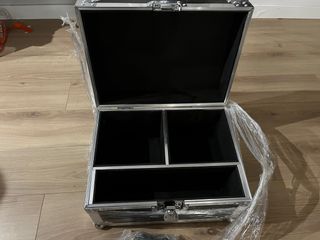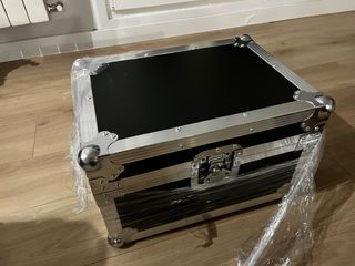 Flightcase robusto con acabado en negro y protecciones plateadas. Sus dimensiones son 46x35x30 cm. - Esquinas reforzadas. - Cierres de seguridad. - Asa para transporte. - Incluye ruedas para poder poner. Ideal para maquina de chispas, cabezas moviles,luces y otro material