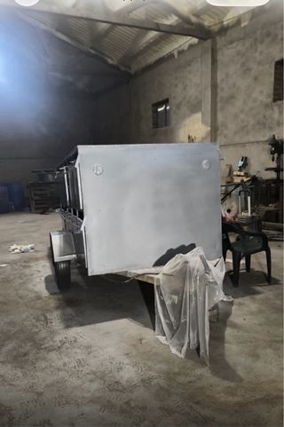Remolque metálico para rehalas. Diseñado para el transporte de perros. - Estructura robusta de metal. - Múltiples compartimentos. - Rueda de repuesto incluida Se escuchan cambios por otros remolques