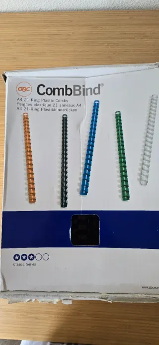 Pack de anillas de plástico para encuadernación GBC CombBind. - Tamaño A4. - 21 anillas. - Color negro