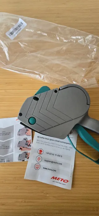 Grapadora de oficina en color blanco y gris con detalles naranjas. Incluye una caja de grapas. - Grapadora de metal y plástico. - Caja de grapas de 5/8 (23/17).