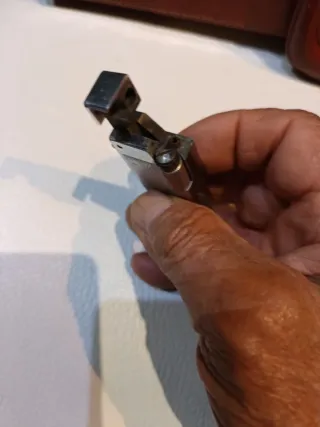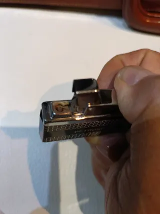 Mechero antiguo de gasolina de la marca Tony. Un accesorio clásico con un diseño distintivo. - Fabricado en metal. - Superficie texturizada para un mejor agarre.