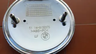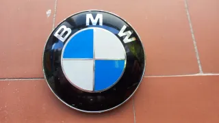 Emblema circular de la marca BMW. Presenta el diseño clásico con los cuarteles en blanco y azul. En buen estado, referencia 148132375. Con las pestañas bien. Medidas en las fotos. Tiene alguna marca del uso. - Diseño circular. - Colores blanco y azul.