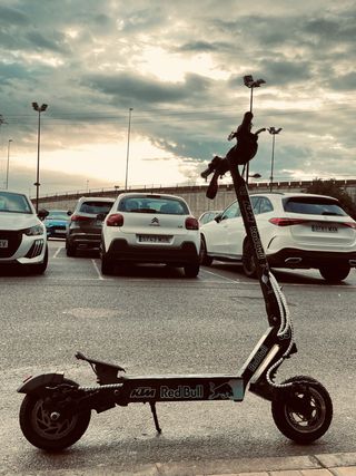 Patinete eléctrico Kukirin G2 con un diseño deportivo y llamativo. - Decoración con logos de KTM y Red Bull. - Manillar con detalles en blanco. - Ruedas todoterreno. - encendido de llave -pilla 50km, y tiene 50km de autonomía - tiene sus 3500 kilómetros el precio es negociable