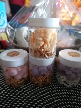 Figuras de cera de soja 100% natural, con diferentes aromas para usar en quemador. Miel, lavanda, vainilla, canela, cereza, fresa y nata, sándalo...