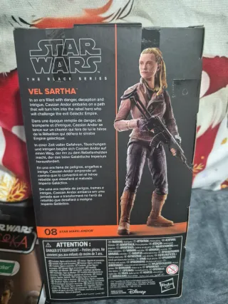 Figura de acción de Vel Sartha de Star Wars: Andor, perteneciente a la línea The Black Series. - Figura de la serie The Black Series. - Personaje: Vel Sartha. - Serie: Star Wars: Andor. - Empaquetado libre de plástico.