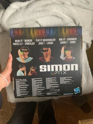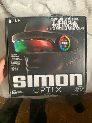 Juego de mesa Simon Optix, un juego portátil y ponible. - Juego de mesa Simon Optix. - Edición wearable. - Requiere 4 pilas AAA (no incluidas).