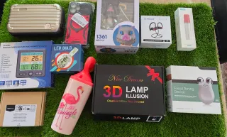 Lote variado de 10 artículos electrónicos y accesorios, con un regalo adicional. - Funda para móvil redmi 12 roja. - Figura de anime. - Auriculares inalámbricos Letscom. - Dispositivo de belleza. - Termohigrómetro digital. - Bombilla LED. - Vaso con diseño de flamenco. - Lámpara 3D.... Tal y como se precia en las fotos, mirar mi perfil para ver más artículos.