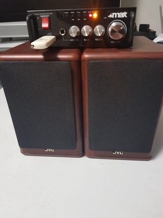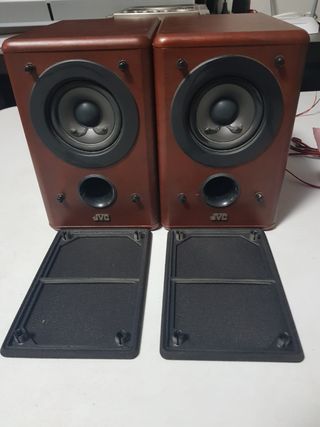 Pareja de altavoces JVC (Japan Victor Company) modelo SP-UXT200 acabados en madera de potencia Max 20W. Los tenía en una minicadena JVC (si interesa, la regalo junto a los altavoces, ya que el cassette no funciona) He estado usando los altavoces con un amplificador y tienen muy buen sonido