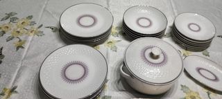 Vajilla de porcelana de calidad L'Estel con 12 platos planos (25cm), 6 hondos (23cm) y 6 de postre planos (19cm), con sopera y 2 bandejas