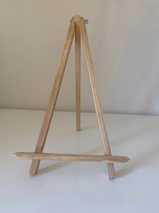 Caballete de madera para mesa, ideal para pintar. Es de madera clara y se encuentra en buen estado. - Perfecto para usar en una mesa. - Diseño plegable para fácil almacenamiento. - Estructura de madera resistente.