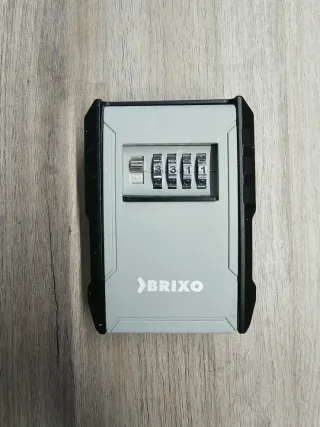 Caja de seguridad para llaves con combinación. - Diseño robusto en gris y negro. - Mecanismo de 4 diales para código numérico. - Marca: BRIXO.