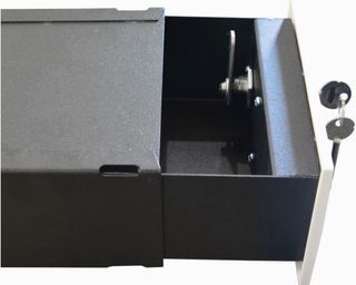 Caja fuerte de seguridad metálica de pared de color negro, diseñada para proteger equipos electrónicos grabador como DVRs de camaras de seguridad cctv. Cuenta con dos cerraduras para mayor seguridad. - Color: Negro - Material: Metal - Tipo de cierre: Cerradura