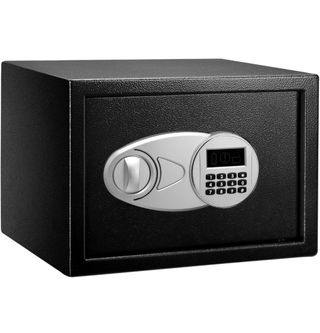 Amazon Basics Caja Fuerte de Seguridad de Acero con Cerradura con Teclado, Protege Dinero, Joyas, Documentos de identificación, 14 l, 35 cm x 25 cm x 25 cm, Color Negro