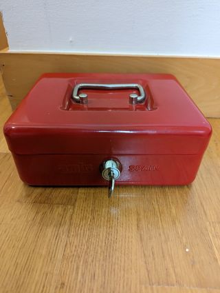 Preciosa caja fuerte con forma de libro, ideal para guardar objetos de valor. Es de color rojo y tiene un diseño elegante. - Se parece a un libro antiguo. - Tiene una ranura para introducir dinero u otros objetos pequeños. - Perfecta para guardar objetos pequeños de forma segura.