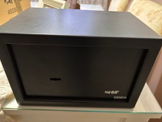 Vendo caja fuerte de la marca HMF. y de color negro. - Ideal para guardar objetos de valor en casa. - Incluye llave. - Está sin usar en caja tiene los apliques para la pared