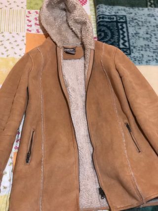 Saco de ante en color camel, ideal para el frío. Cuenta con un forro interior de borreguito muy suave y cálido. PRECIO NEGOCIABLE 💵 - Cierre de cremallera. - Capucha con forro. - Dos bolsillos frontales con cremallera.