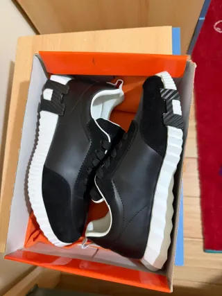 Unas Hermes clásicas, blancas i negras i con detalles en la suela, incluye caja i su bolsa Hermes para guardar las bambas. -Talla 41 -Con caja i bolsa -Nuevas, solo puesta 1 vez